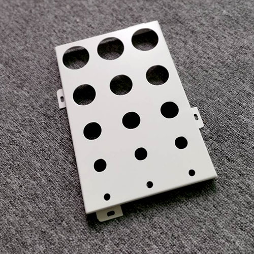 冲孔铝单板设计可通过多维度创新显著提升空间视觉效果。在孔型设计上,采用非对称排列的六边形、菱形或水滴形孔洞,能打破传统方孔的单调感,光线透过时在墙面形成动态光影,尤其适合商业空间或艺术展馆的立面装饰。渐变式孔径设计更具视觉张力,如从底部2mm小孔向上渐变为10mm大孔,可营造向上延伸的空间感,特别适用于低层高场所的垂直面装饰。